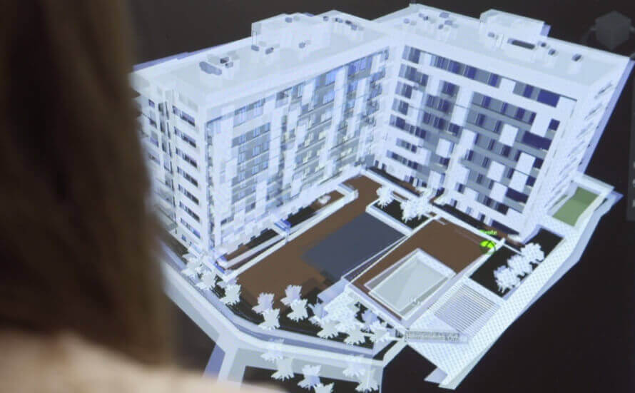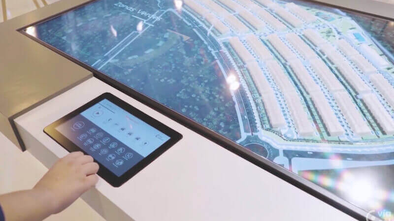 Dotamos nuestros puntos de venta de tecnología, y para ello hemos sido innovadores en el uso de maquetas virtuales, en las que mediante la interacción con la pantalla el visitante puede conocer con detalle como será su futura casa, viendo a través de clic de vídeos sus zonas comunes, vivienda tipo, entorno...