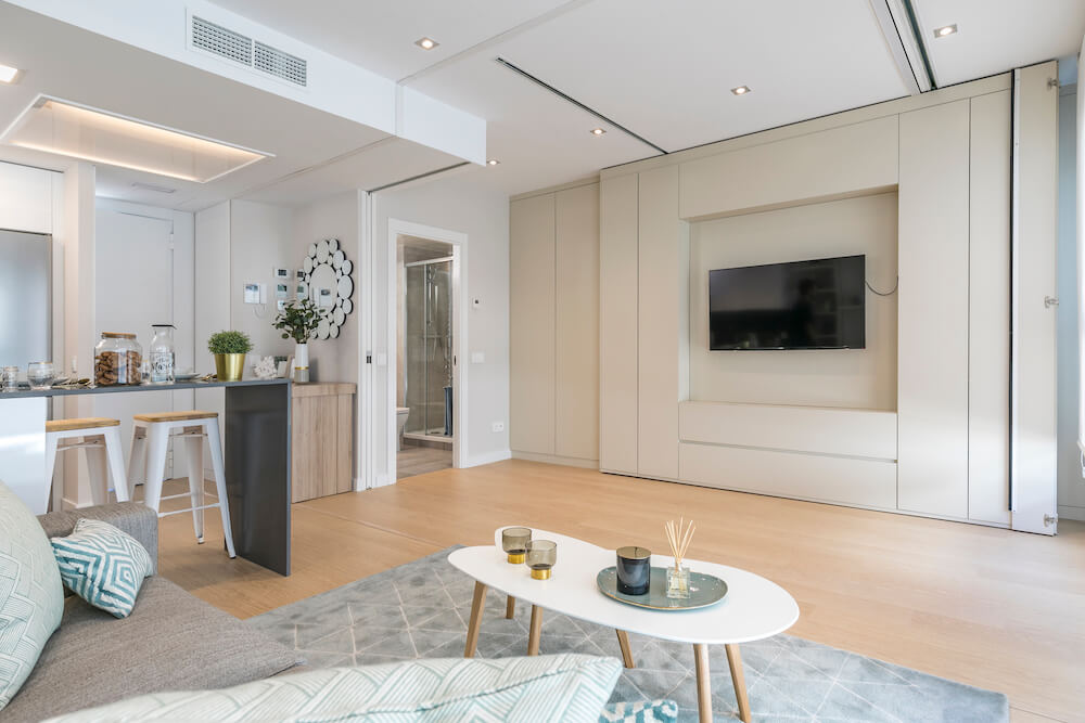 Magic House es un nuevo concepto basado en hogares modulables de estética diáfana y elegante, que permiten originar en un mismo espacio un sinfín de posibilidades: convertir un amplio comedor en una sala de estar, transformarlo en un dormitorio o incluso generar dos dormitorios independientes... todo lo que puedas imaginar. Además, puedes hacer aparecer y desaparecer estos espacios con el mínimo esfuerzo en tan solo un minuto. Auténtica magia.
